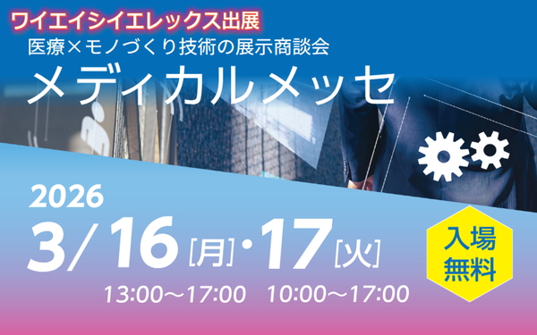 当社の子会社であります、ワイエイシイエレックス株式会社(以下、エレックス)は、医療とモノづくりの連携(医工連携)をはかるメディカルメッセに出展いたします。
